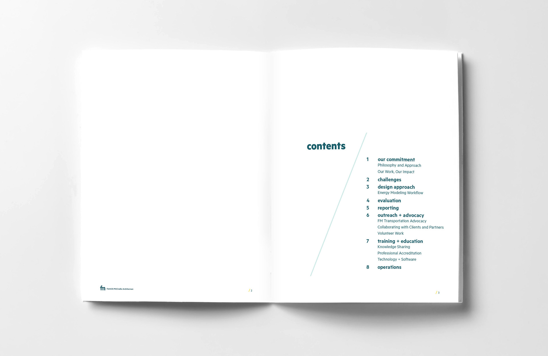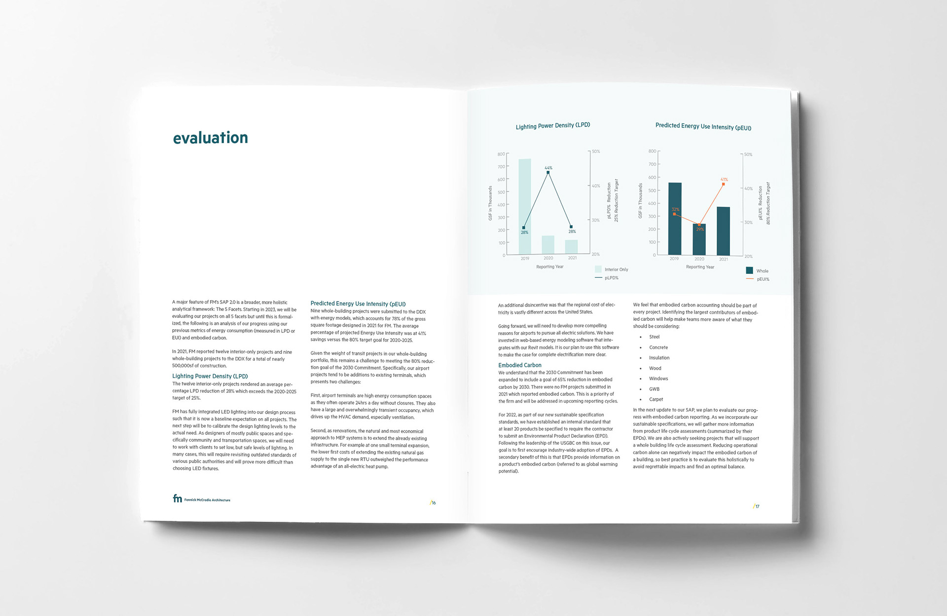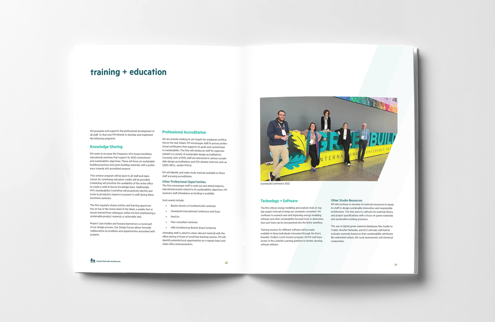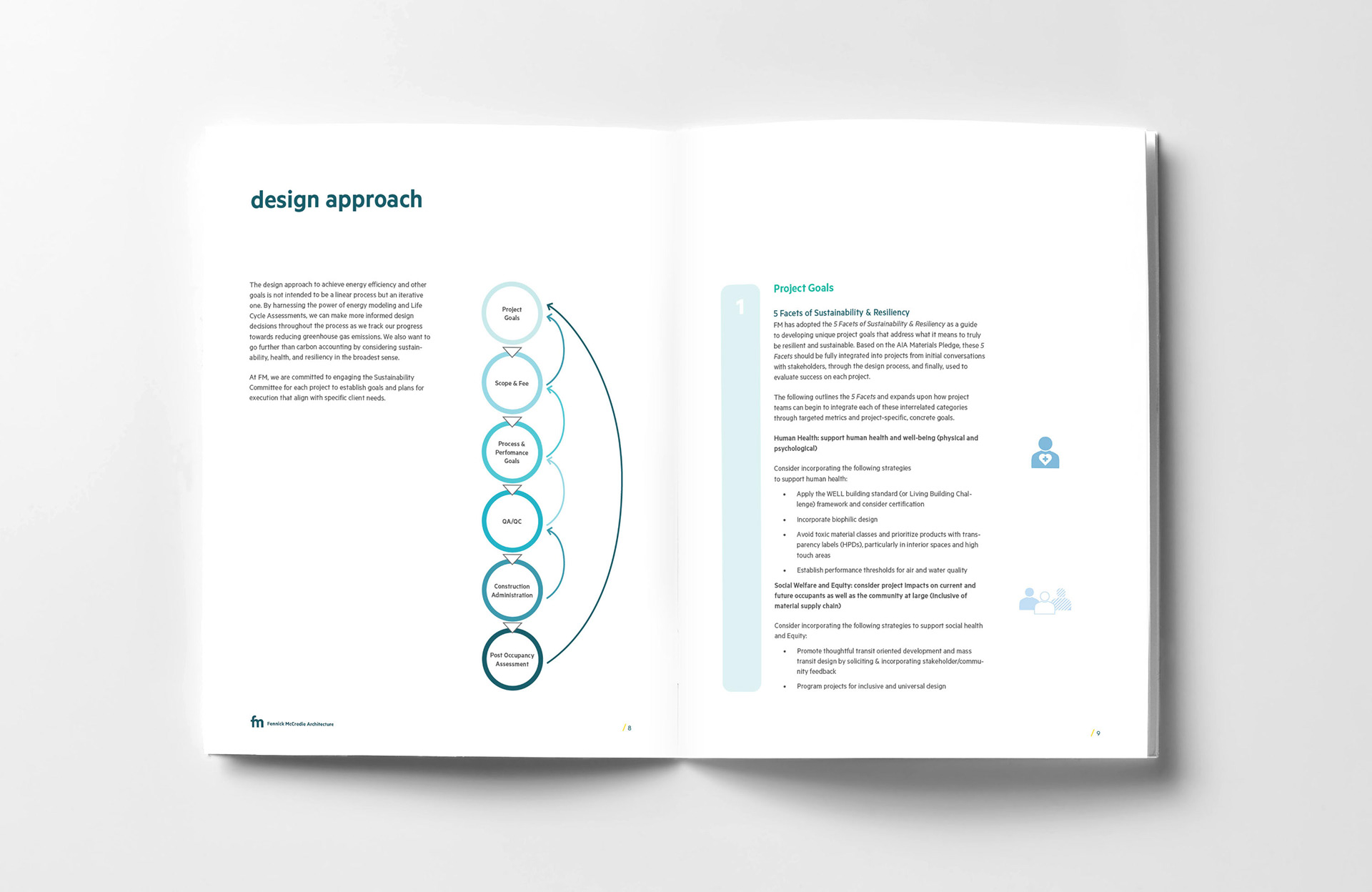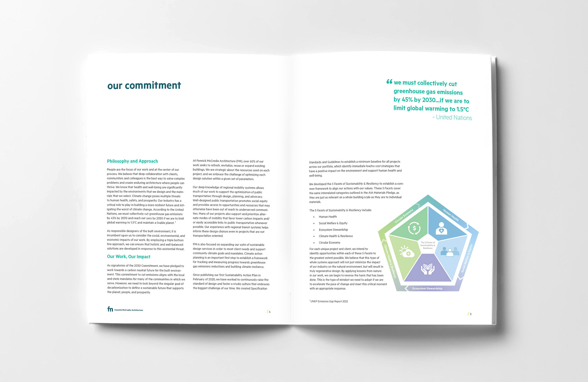 As a signatory of the AIA 2030 Commitment, the firm needed to outline a Sustainability Action Plan in order to achieve net zero emissions by 2030. The internal sustainability committee outlined the content and I designed the final report.