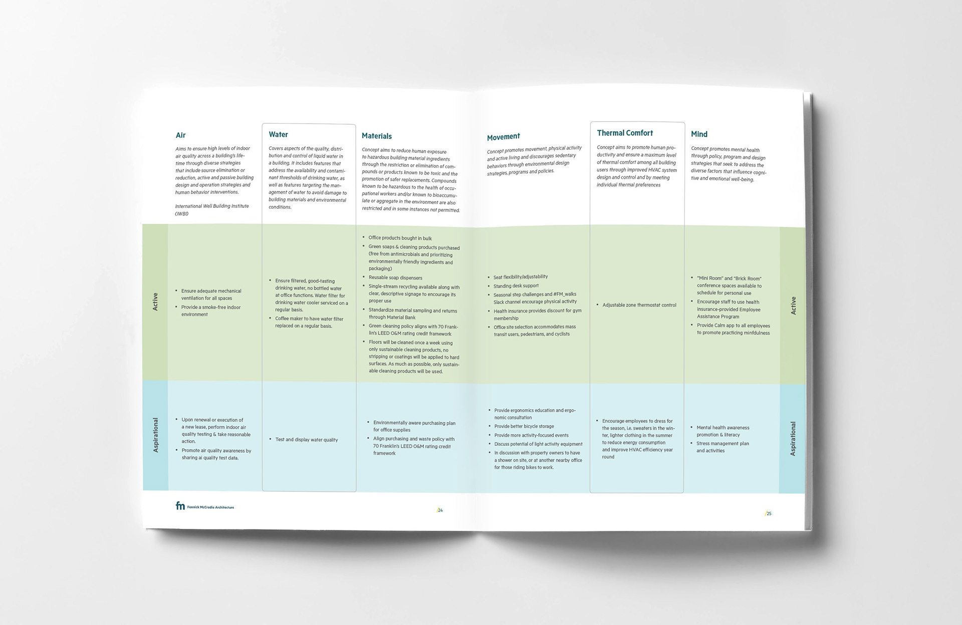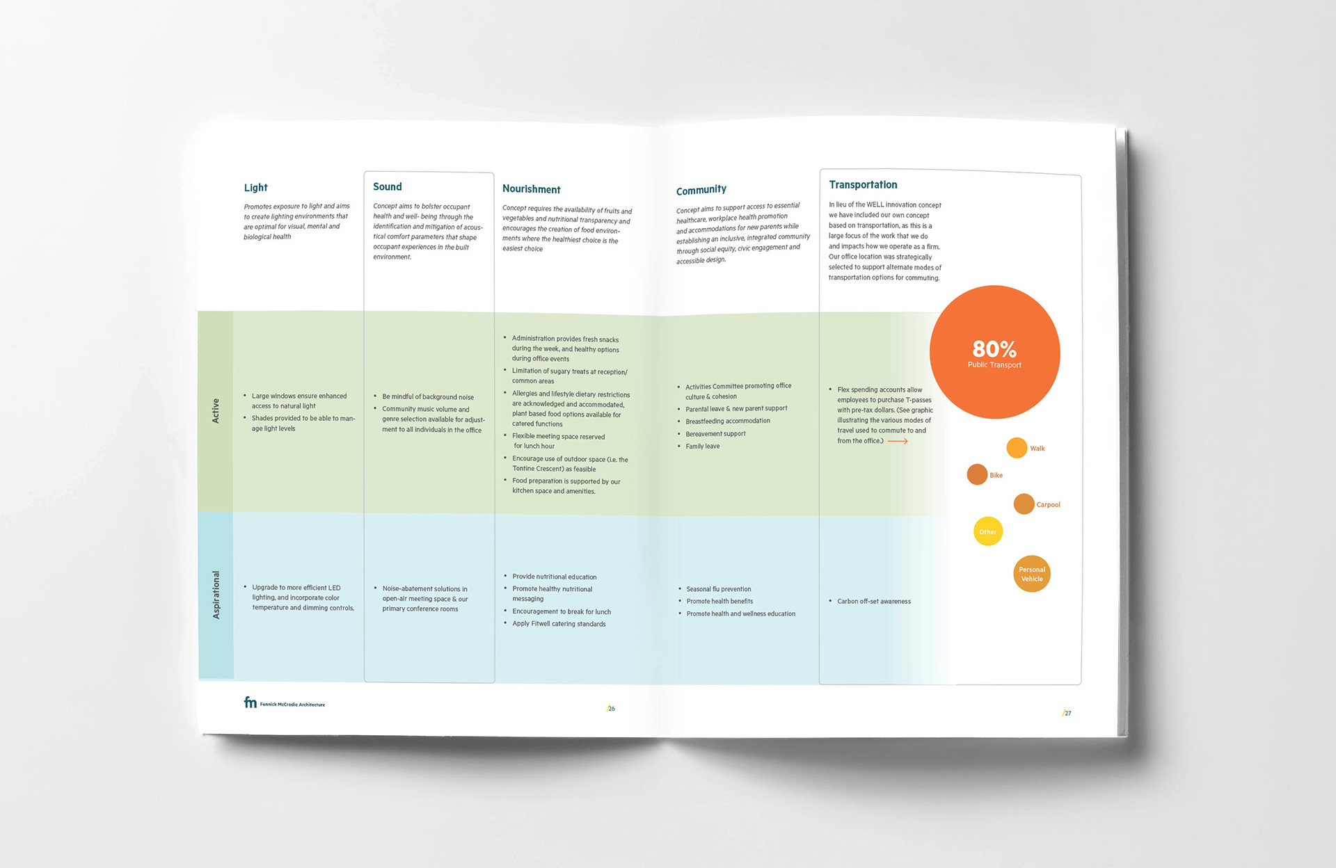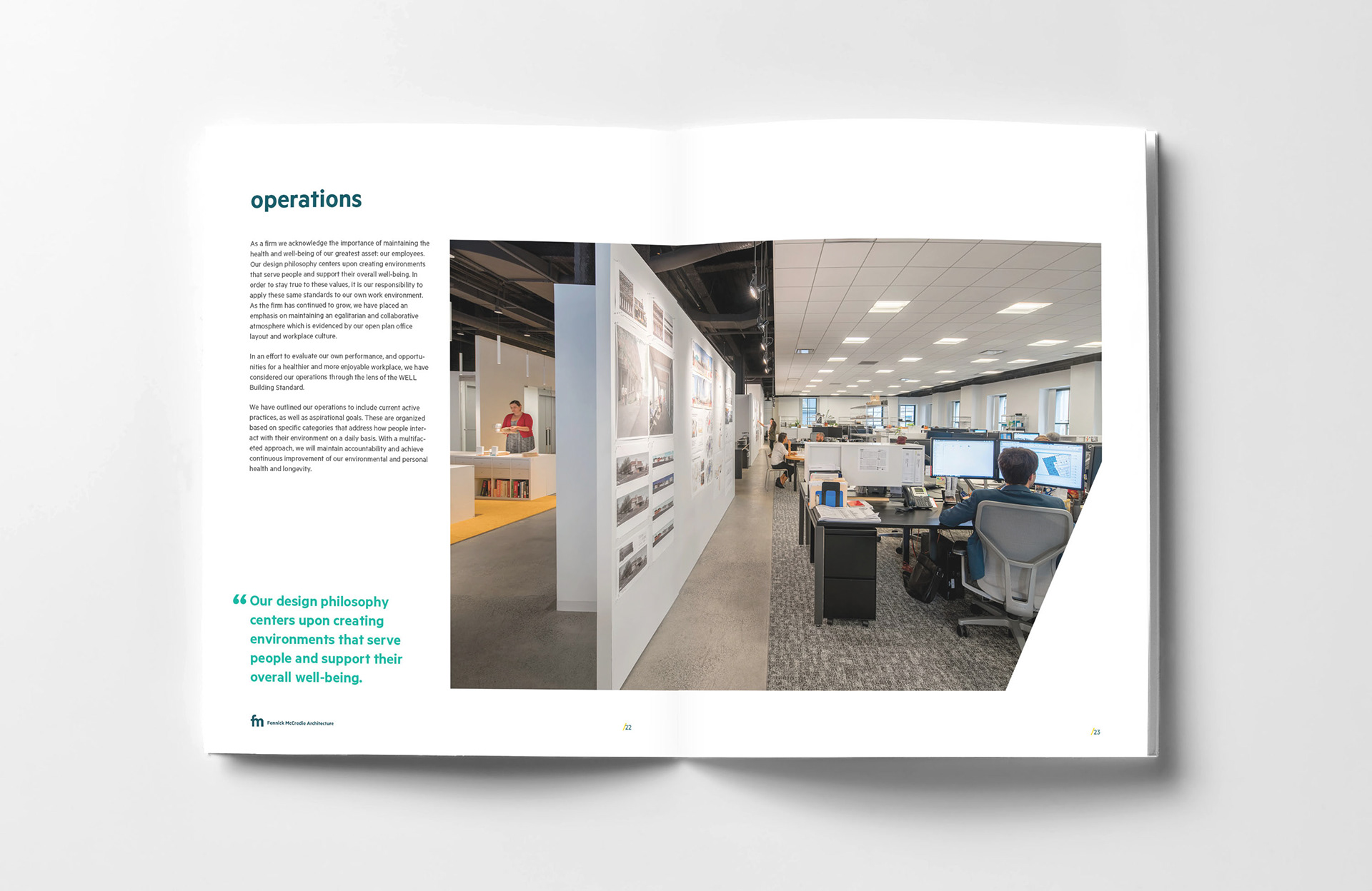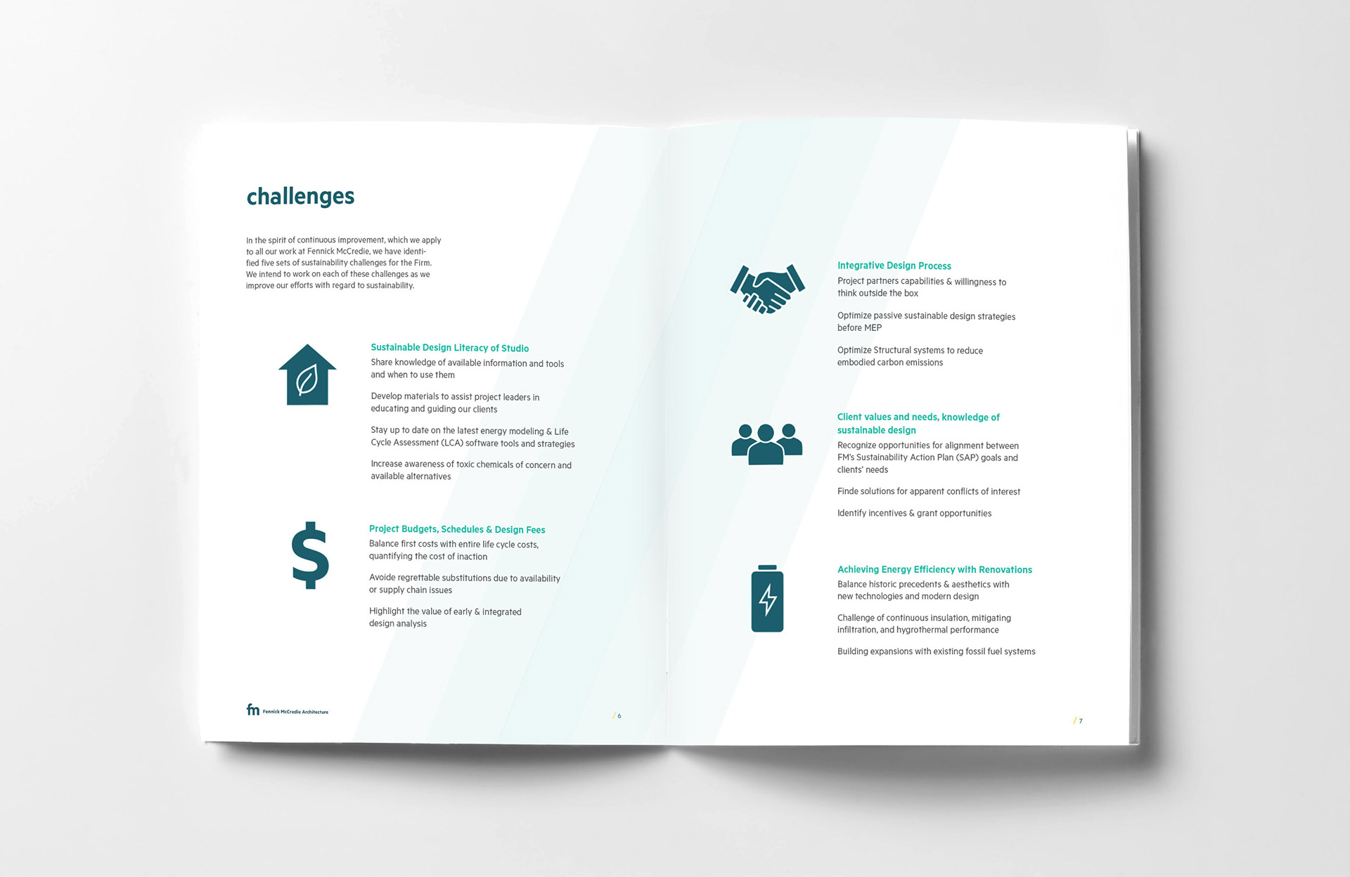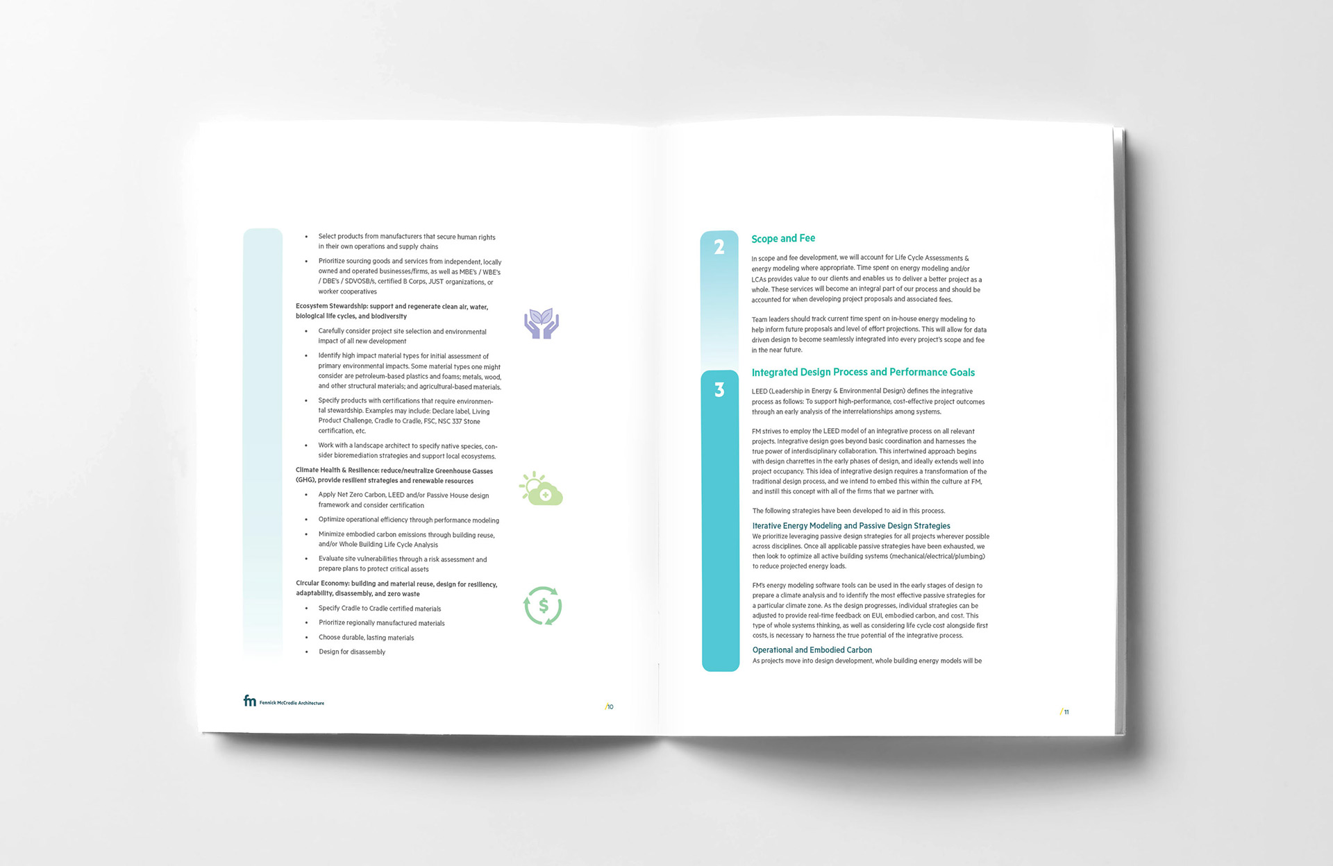 As a signatory of the AIA 2030 Commitment, the firm needed to outline a Sustainability Action Plan in order to achieve net zero emissions by 2030. The internal sustainability committee outlined the content and I designed the final report.